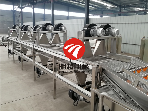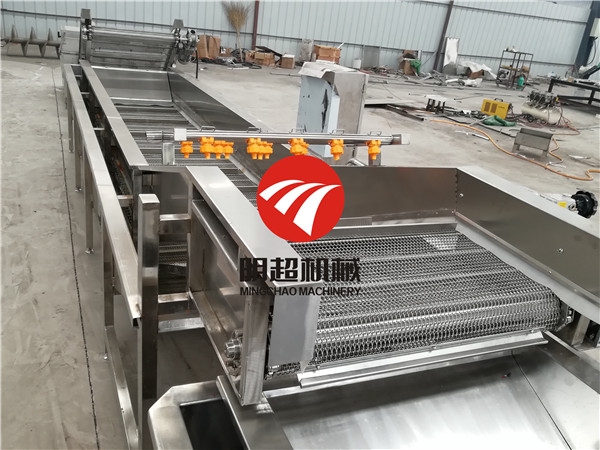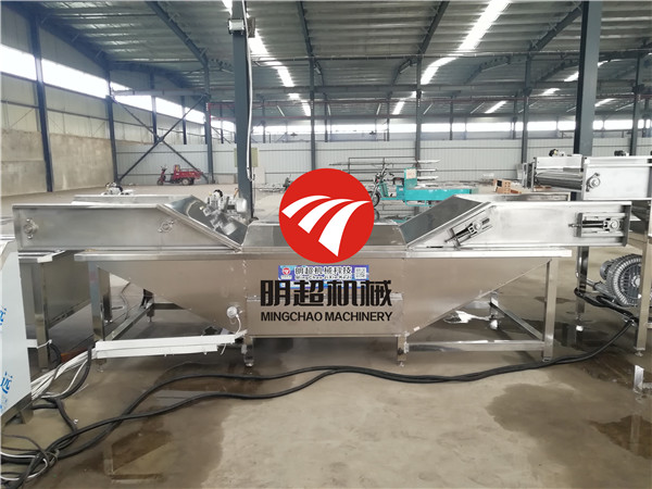 全自動蔬菜清洗機(jī)工作原理大致是:首先需要清洗的蔬菜全部放入水槽,在高壓水流和強(qiáng)力氣泡的作用下,被充分打散、翻滾、清洗、傳送。蔬菜表面的泥沙會脫落,沉淀到底部隔離倉,防止了翻揚(yáng)回流造成再度污染。而從蔬菜上洗落下來的雜物和小蟲會漂浮在水面,然后被網(wǎng)孔收集,溢出水槽的水流被排除水箱,進(jìn)入尼龍袋中。蔬菜被蔬菜清洗機(jī)洗干凈后,再經(jīng)過噴淋的清洗,然后通過傳送帶送出,傳送帶末端有一個(gè)吹起裝置,沒有被清理掉的雜物吹落。蔬菜清洗機(jī)自帶水循環(huán)系統(tǒng),清洗槽和低貯水箱中的水在高貯的水箱中過濾后,再由離心泵加壓被送回水槽。耗水量較低,節(jié)水節(jié)能。所有附屬在清洗機(jī)上的裝置及構(gòu)件都可簡便安裝、拆卸和清洗。通過二至三臺的連接,可使清洗、去異物、殺菌、冷卻等工藝連續(xù)進(jìn)行。蔬菜清洗機(jī)主要部分皆采用不銹鋼制作,洗凈度高,能保持原有色澤。廣泛用于清洗葉菜類、食用菌類、水果、海產(chǎn)品和中草藥類等各類農(nóng)副產(chǎn)品。是當(dāng)今蔬菜加工、食品、餐飲等行業(yè)的設(shè)備。