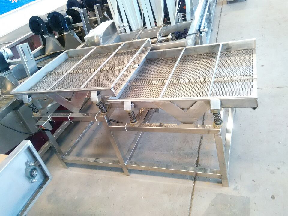 f:凈菜加工設(shè)備-挑選輸送機(jī)主要用于蔬菜后期的初處理,通過PVC輸送機(jī)運(yùn)送的方式由工人在設(shè)備兩旁挑選,把清洗殺菌完的蔬菜上面的爛葉、干葉、異物、毛發(fā)等處理掉,也可用于前期處理,像葉類菜:青菜、油麥菜、生菜、菠菜、芥藍(lán)、茼蒿這一類的麻煩一些,摘除的部分多一些。